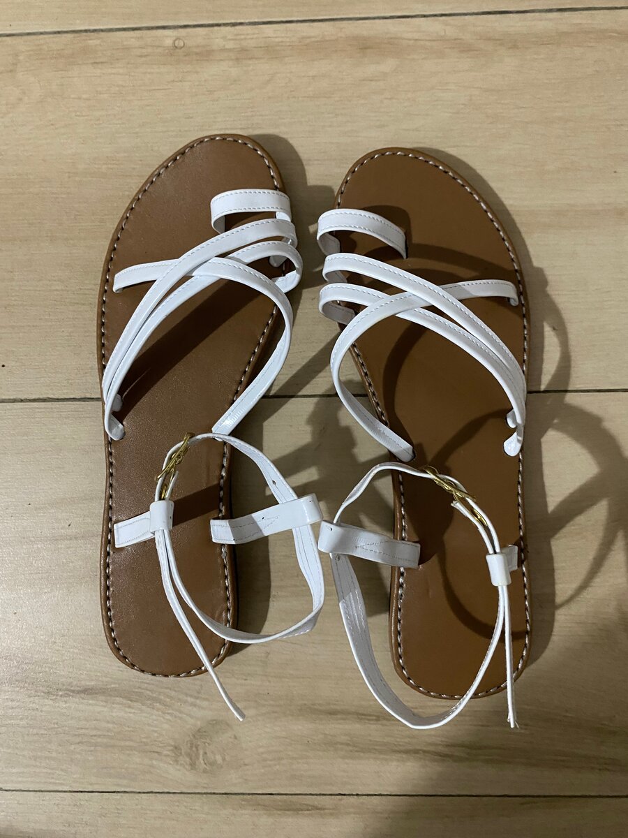 sandales blanches, pointure 41, le parfait équilibre entre confort et style ! Avec leur semelle intérieure marron ultra-douce et leurs lanières blanches épurées,ces sandales offrent un maintien optimal tout en restant légères et aérées