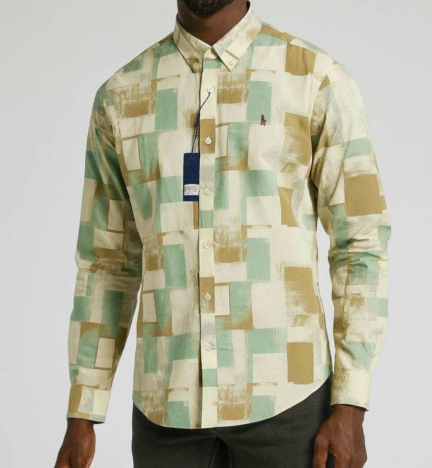 Découvrez cette chemise à manches longues pour homme au design géométrique original. Parfaite pour un look à la fois chic et décontracté, elle s'associe aisément avec un pantalon élégant ou un jean. Fabriquée en coton de haute qualité, elle assure confort et style en toute occasion. Idéale pour le bureau ou une sortie en ville.