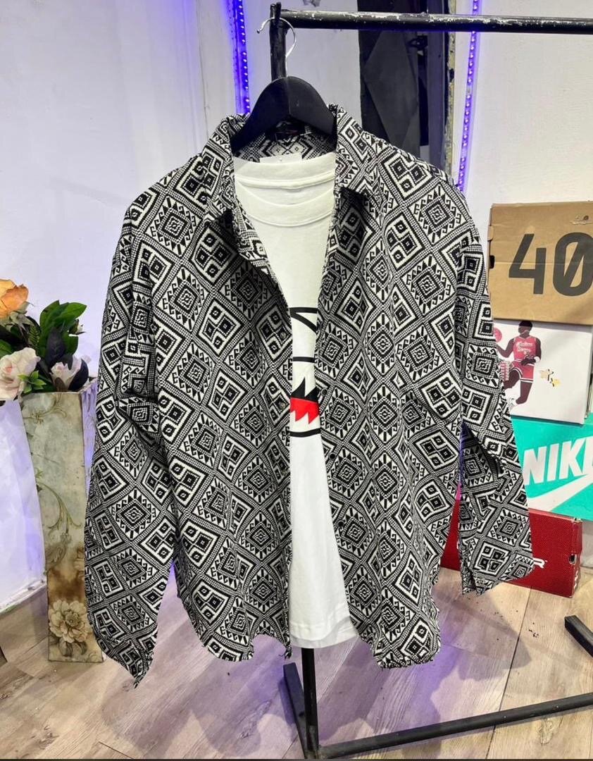 Découvrez cette chemise élégante à motifs géométriques noirs et blancs. Parfaite pour un style décontracté ou une tenue de soirée, elle apporte une touche moderne et sophistiquée à votre garde-robe. Fabriquée en tissu léger et respirant pour un confort optimal. Idéale pour les hommes cherchant un look unique et tendance.