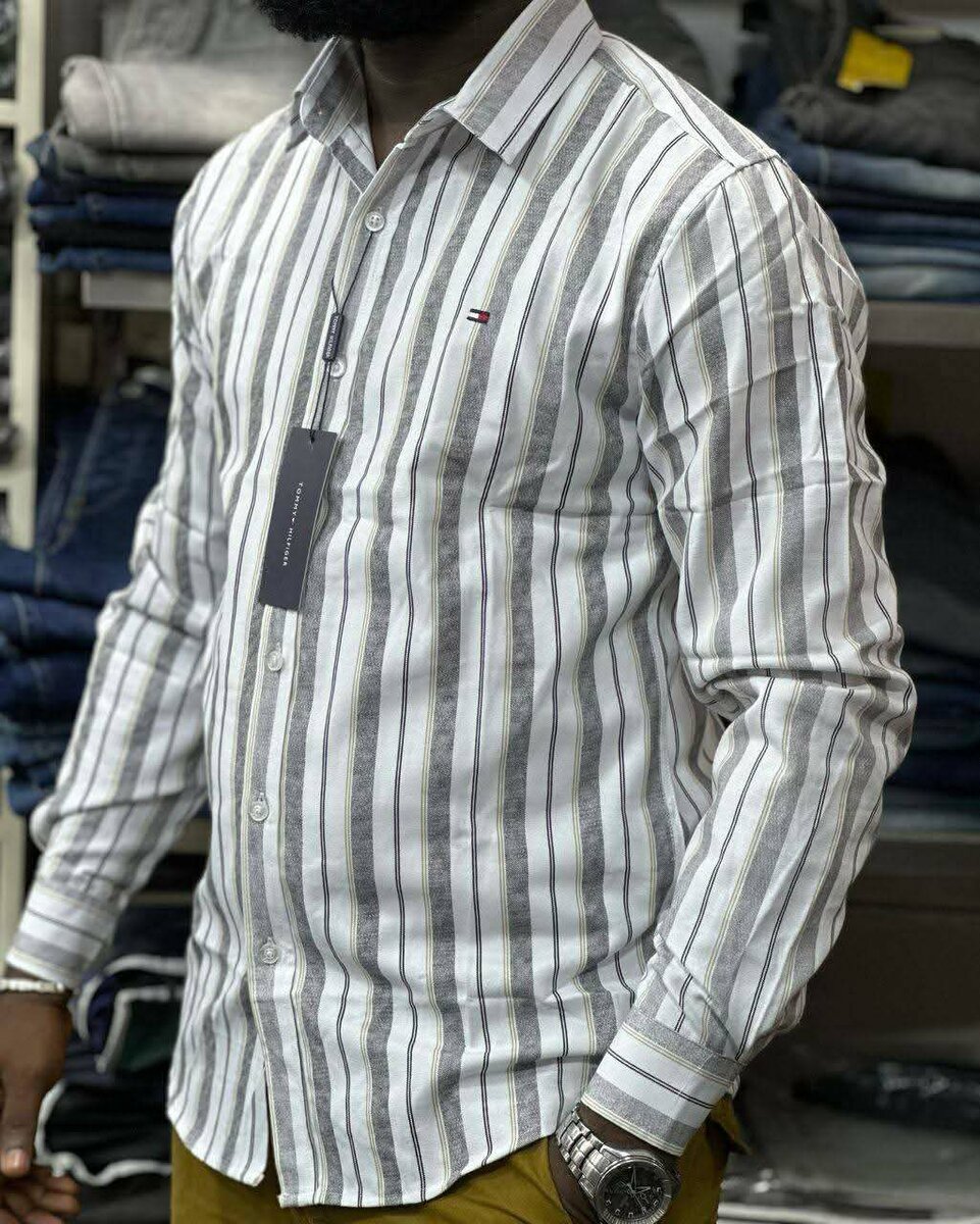 Découvrez notre chemise à rayures pour hommes, idéale pour un look professionnel et moderne. Conçue avec des matériaux confortables, elle est parfaite pour le bureau ou les sorties décontractées. Offrez-vous un style intemporel et chic.