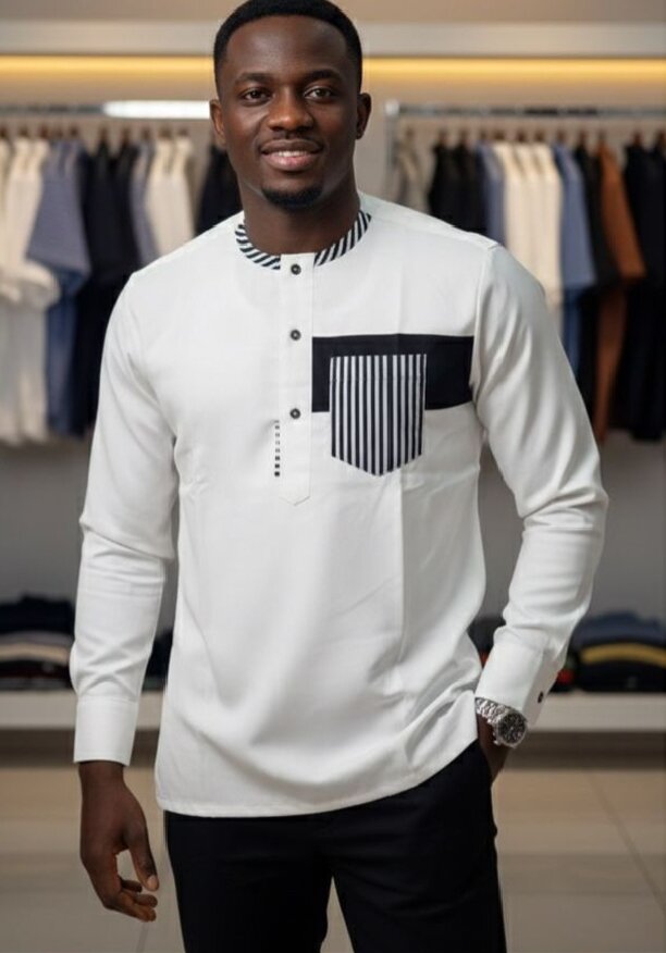 Optez pour cette chemise africaine élégante, idéale pour toutes occasions. Confectionnée en tissu doux, elle assure confort et style avec son design unique à poches rayées. Parfaite pour les événements formels ou un look décontracté et chic. Un choix incontournable pour une garde-robe moderne et sophistiquée.