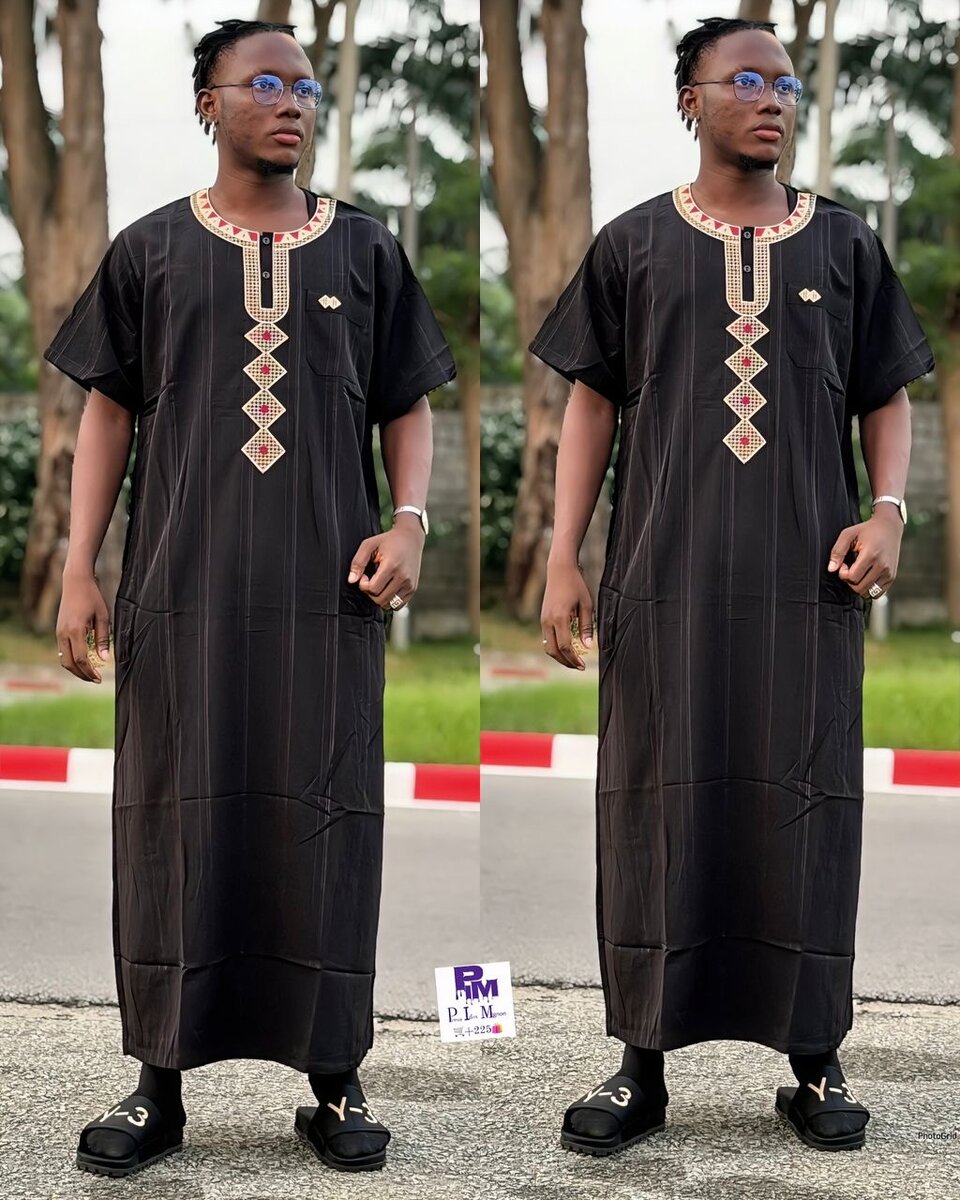 Chemise africaine noire pour homme, parfaite pour des occasions spéciales ou décontractées. Conçue pour un confort optimal et un style élégant.