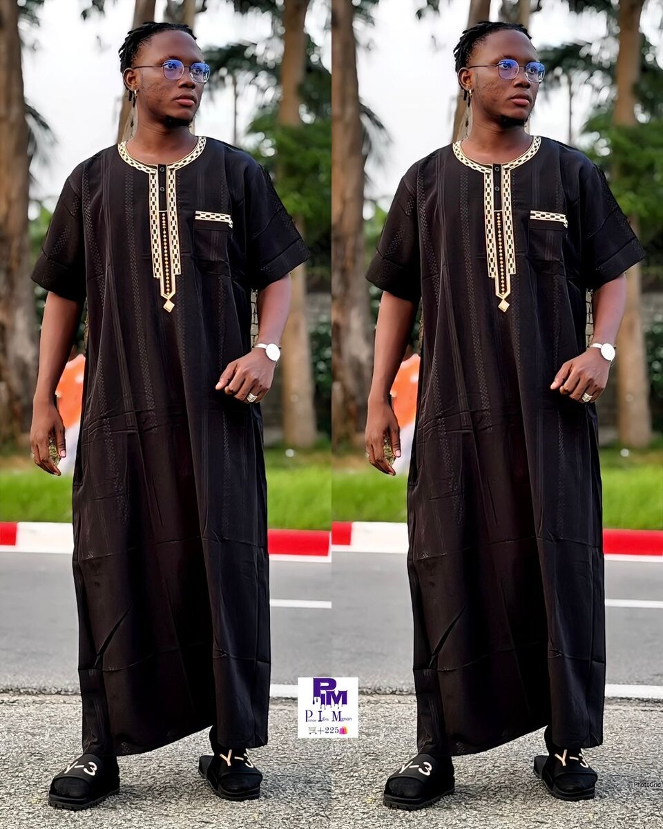 Chemise africaine noire pour homme, confortable et élégante. Parfaite pour les occasions spéciales ou décontractées. Confectionnée avec des matériaux de qualité.