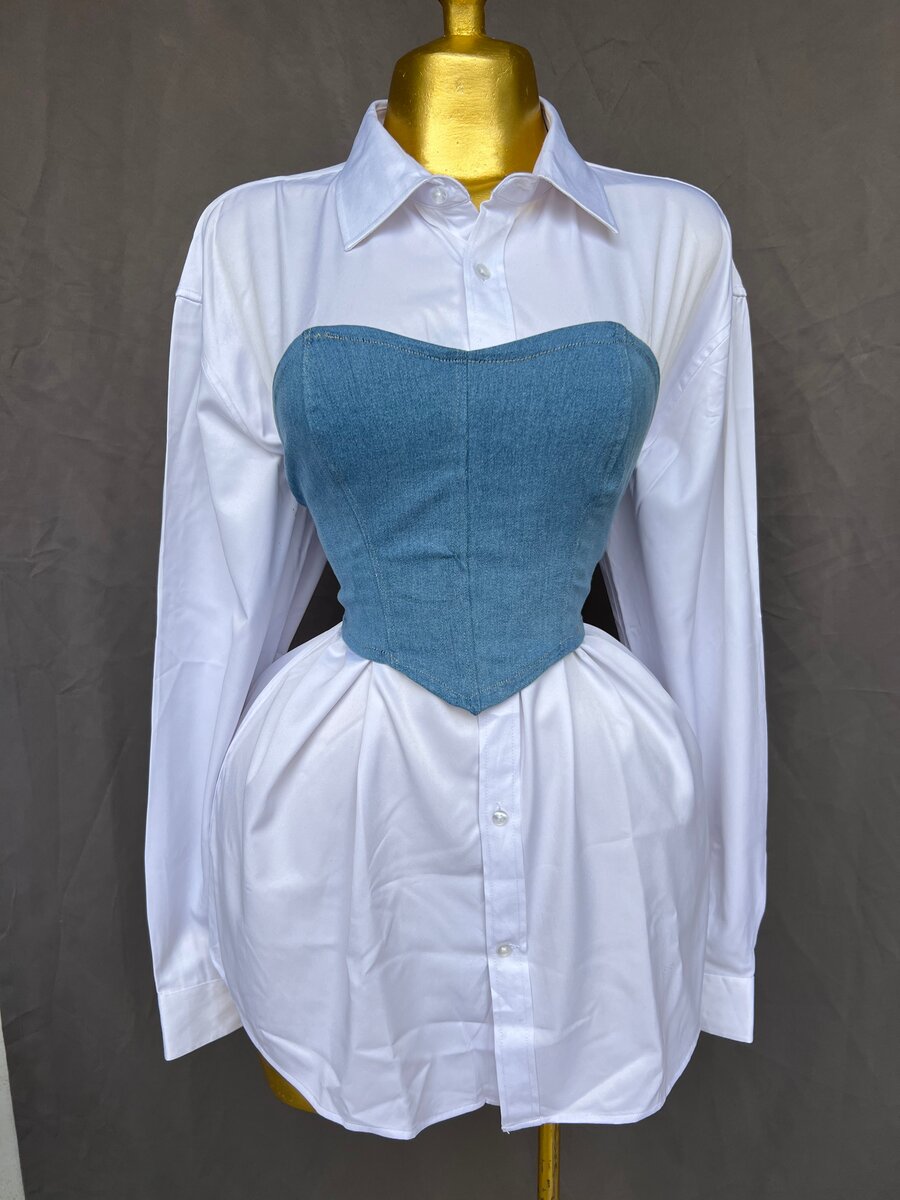 Adoptez un style unique avec cette chemise blanche classique assortie d'un corset amovible. Idéale pour une tenue chic et moderne, elle offre une allure élégante tout en soulignant la silhouette. Parfaite pour les soirées ou les événements spéciaux, elle se porte seule ou avec le corset pour un effet glamour. Cette pièce est un choix parfait pour les fashionistas à la recherche de nouveauté et de style sophistiqué.