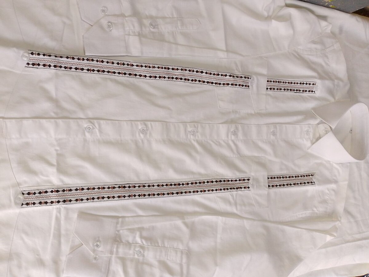 Chemise blanche élégante avec broderie décorative pour homme. Idéale pour les occasions formelles ou les rendez-vous professionnels. Confortable, design unique et finitions soignées.