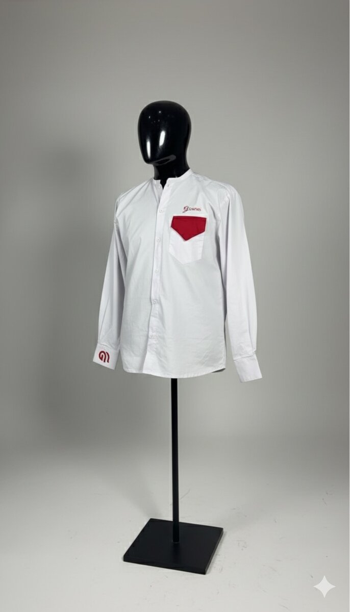 Chemise blanche élégante pour homme avec poche rouge contrastante. Parfaite pour un look professionnel ou décontracté. Douce et confortable, idéale pour toutes les occasions.
