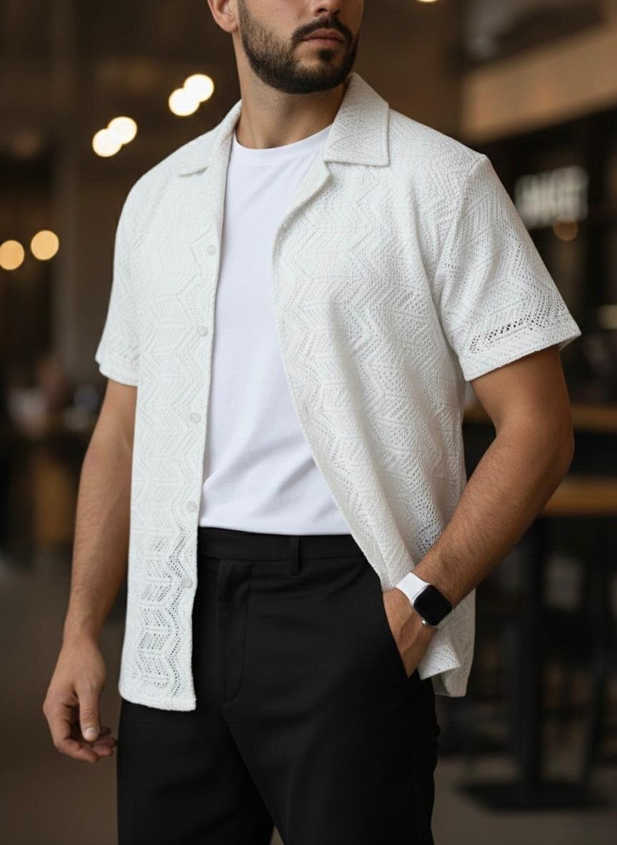 Découvrez notre chemise blanche en dentelle, parfaite pour un look élégant et moderne. Conçue avec des tissus de haute qualité, elle offre un confort ultime et un style intemporel. Idéale pour les sorties estivales, soirées ou occasions spéciales. Se marie facilement avec un pantalon ou un jean pour une apparence raffinée. Un choix parfait pour les hommes soucieux de mode et confort.