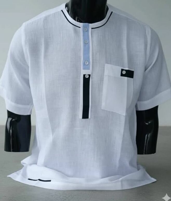 Chemise élégante en lin blanc pour homme, parfaite pour les occasions décontractées ou formelles. Tissu respirant et léger, avec détails contrastants pour un style unique. Idéale pour l'été, elle s'accorde parfaitement avec un pantalon ou un short.