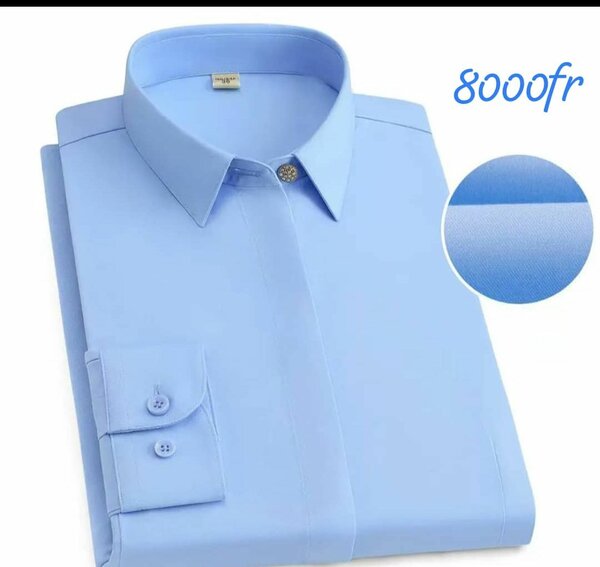 Chemise blanche, manches longues, détails brodés devant, coupe élégante et neuve.