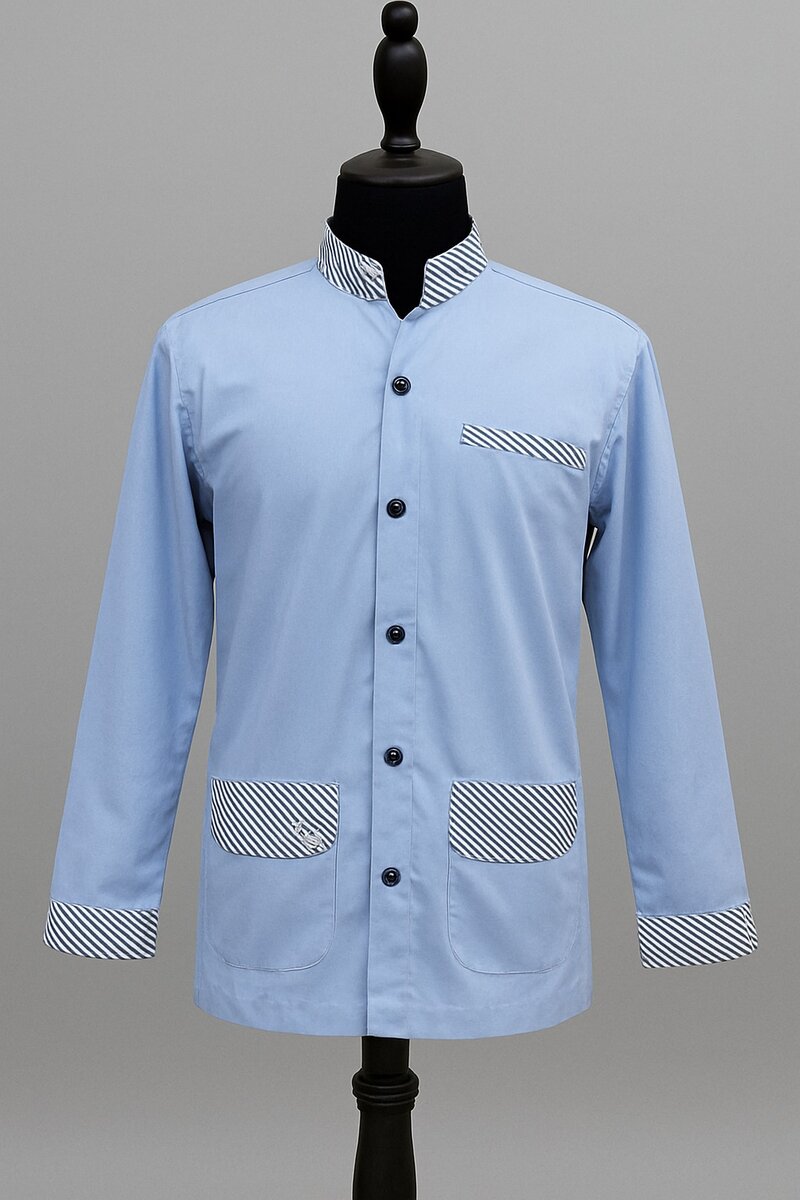 Optez pour cette chemise bleu ciel à rayure et fonctionnelle, idéale pour un usage professionnel, les sorties. Confectionnée en tissu résistant, elle offre confort et durabilité.