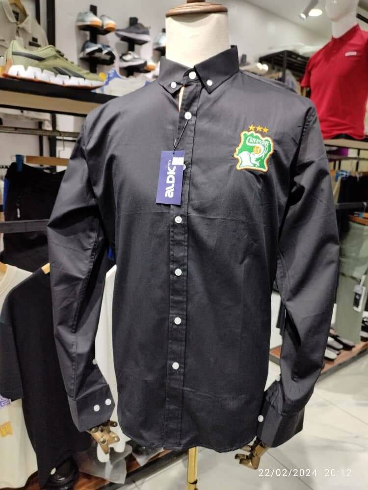 Élégante chemise pour homme Côte d'Ivoire. Parfaite pour les fans de football, elle est idéale pour un look décontracté et stylé. Disponible en plusieurs couleurs, avec écusson brodé. Confort et qualité garantis.