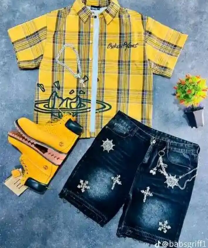 Chemise jaune à carreaux tendance avec motif unique. Parfaite pour un look décontracté et stylé. Idéale à associer avec un short en jean et des bottes pour une tenue complète. Confort et style assurés.