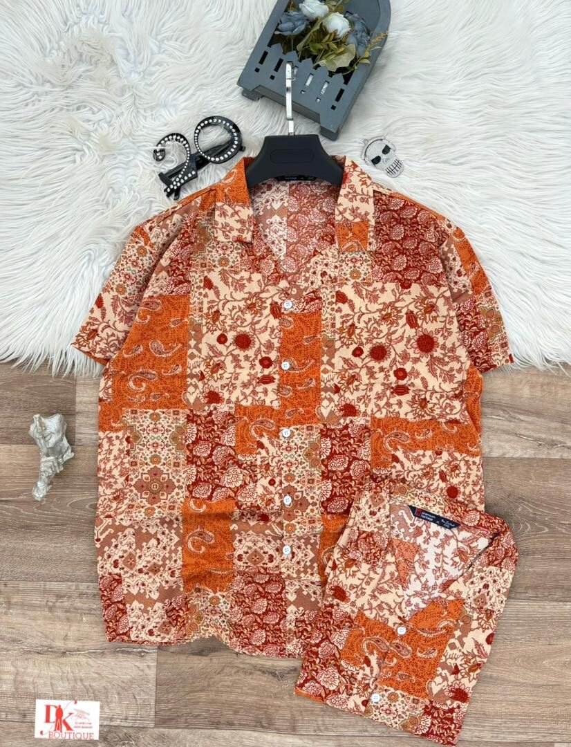 Découvrez cette chemise à manches courtes au design floral élégant et aux tons chauds. Idéale pour des sorties estivales ou des moments de détente, elle offre confort et style. Tissu léger et respirant, parfaite pour égayer votre garde-robe.