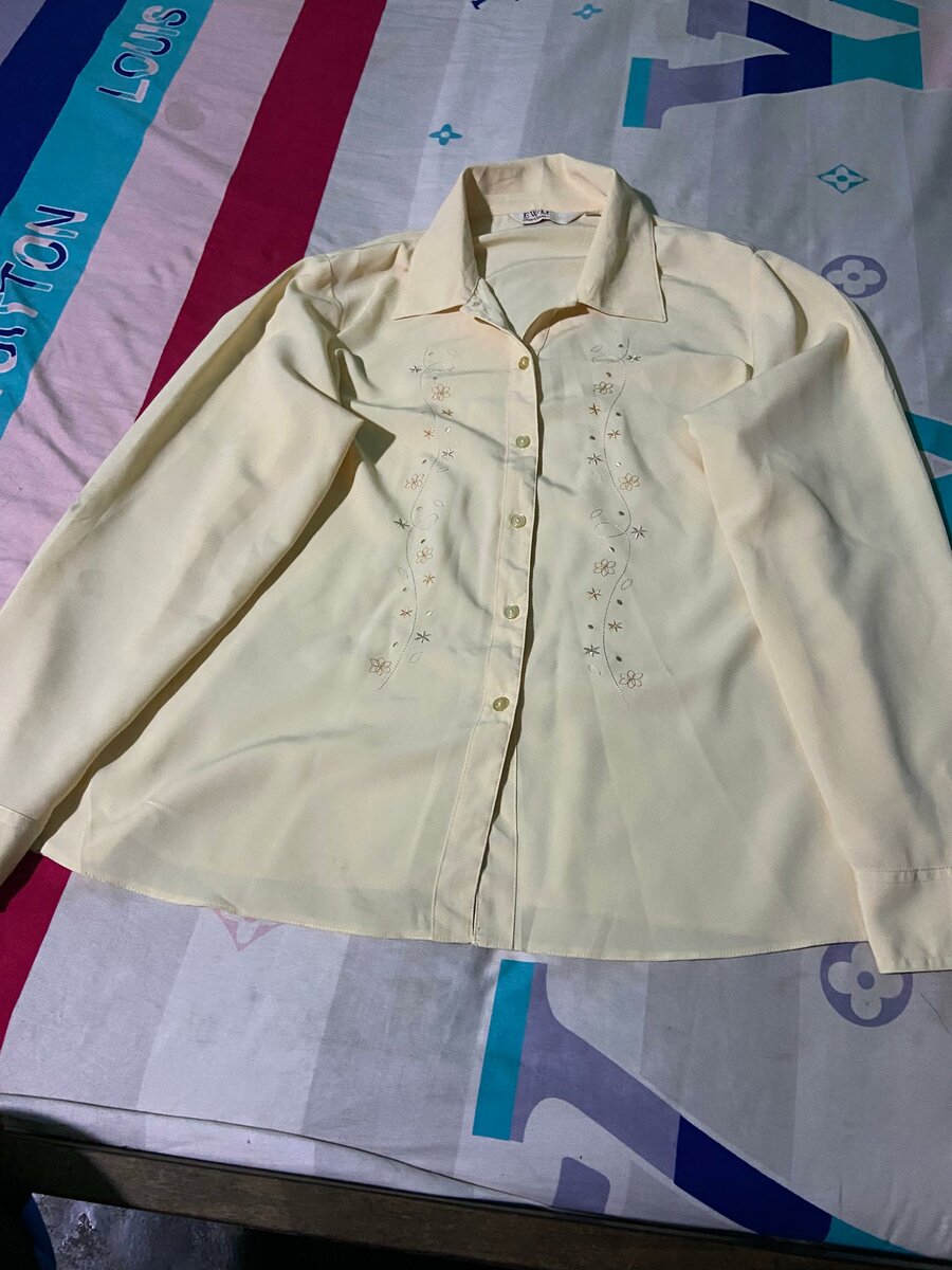 Un choix raffiné pour toute occasion, cette chemise en soie jaune offre confort et style avec ses détails brodés délicats. Idéale pour le bureau ou des sorties élégantes.