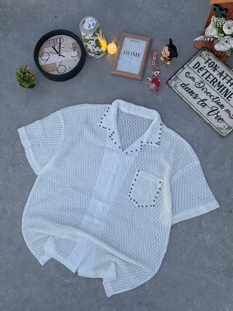 Découvrez cette élégante chemise en crochet blanc, idéale pour un look estival décontracté. Fabriquée avec des matériaux légers, elle offre un confort ultime tout en vous assurant un style raffiné. Parfaite pour les journées chaudes, elle se marie facilement avec un jean ou un short. Optez pour un style unique et tendance !
