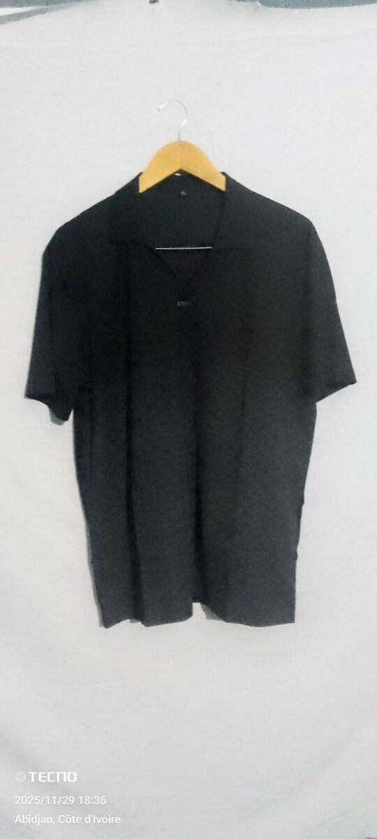 Chemise en lin noire élégante, parfaite pour un look décontracté et chic. Confort respirant idéal pour l'été. Must-have pour votre garde-robe!