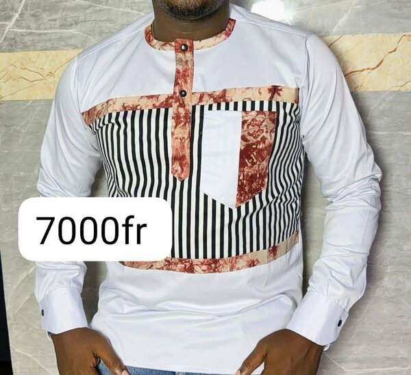 Chemise Classique chic (manches longues) : un parfait mélange de tissu raffiné et de broderies africaines. Idéale pour vos rendez-vous professionnels ou cérémonies.