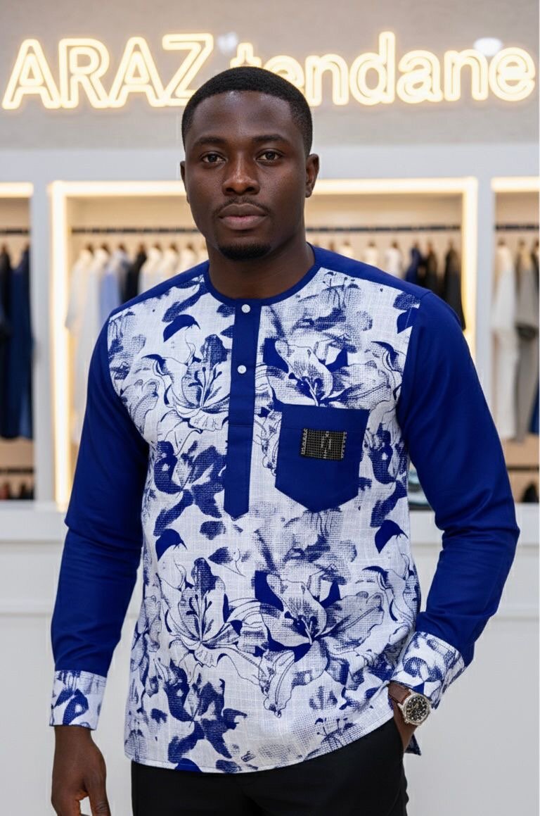Découvrez la chemise homme africaine ARAZ, élégante et moderne. Conçue pour les hommes qui apprécient le style et le confort. Différents motifs et couleurs disponibles.