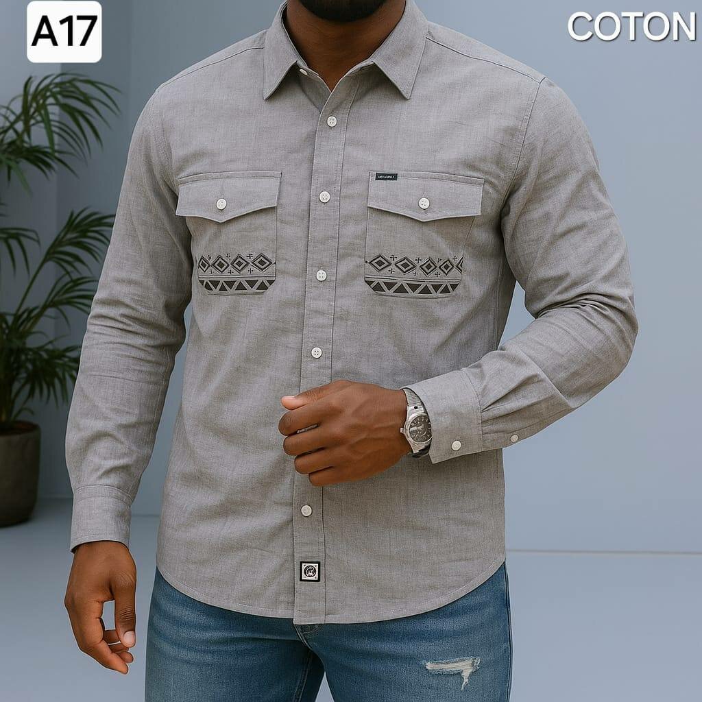 Adoptez un style raffiné avec cette chemise en coton pour homme. Parfaite pour les occasions décontractées ou formelles, elle offre confort et élégance. Disponible en plusieurs couleurs avec un design moderne et des détails brodés.