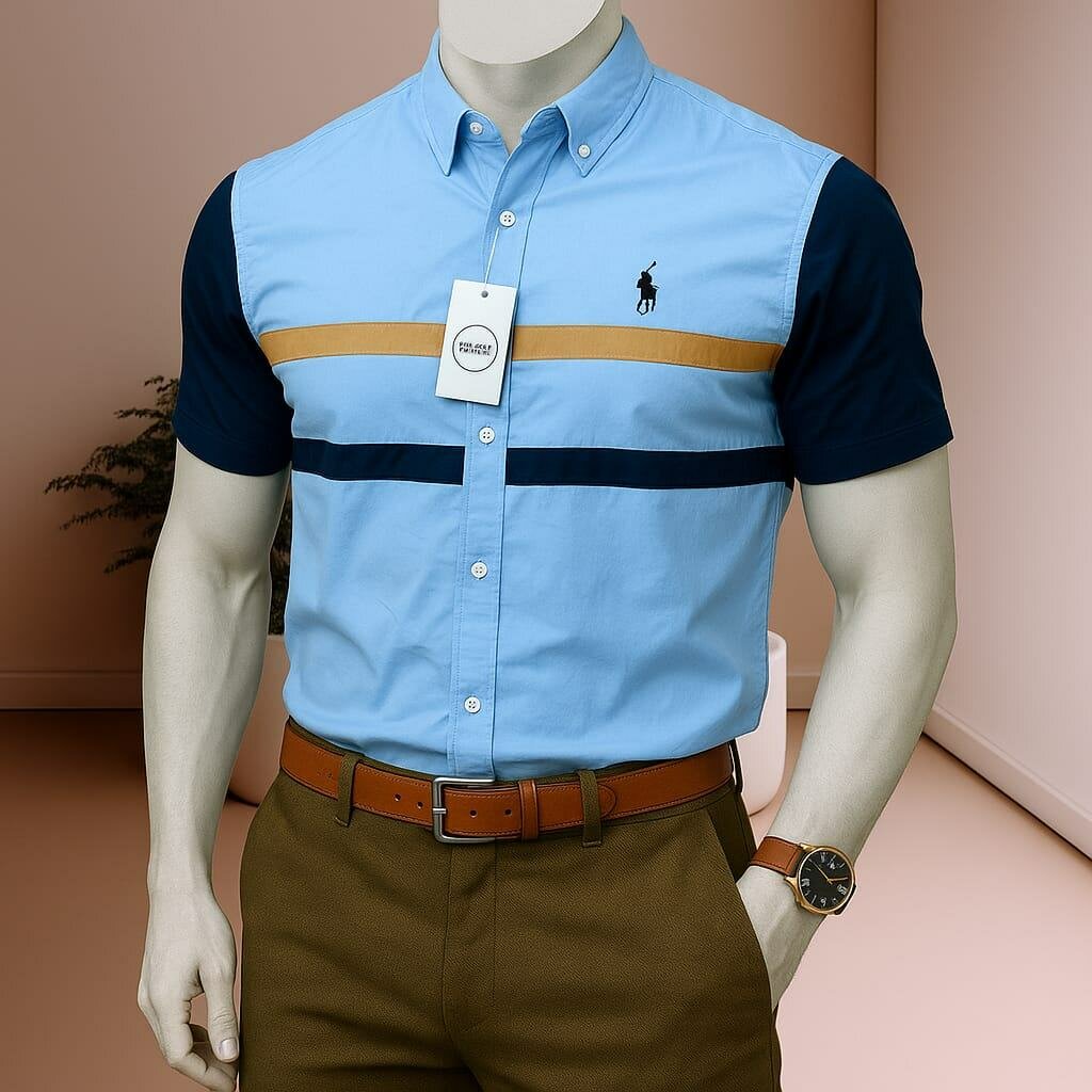 Optez pour cette chemise homme élégante bleue à manches courtes pour un look moderne et raffiné. Idéale pour les occasions décontractées ou professionnelles, elle est confectionnée en matériau de qualité pour un confort optimal.