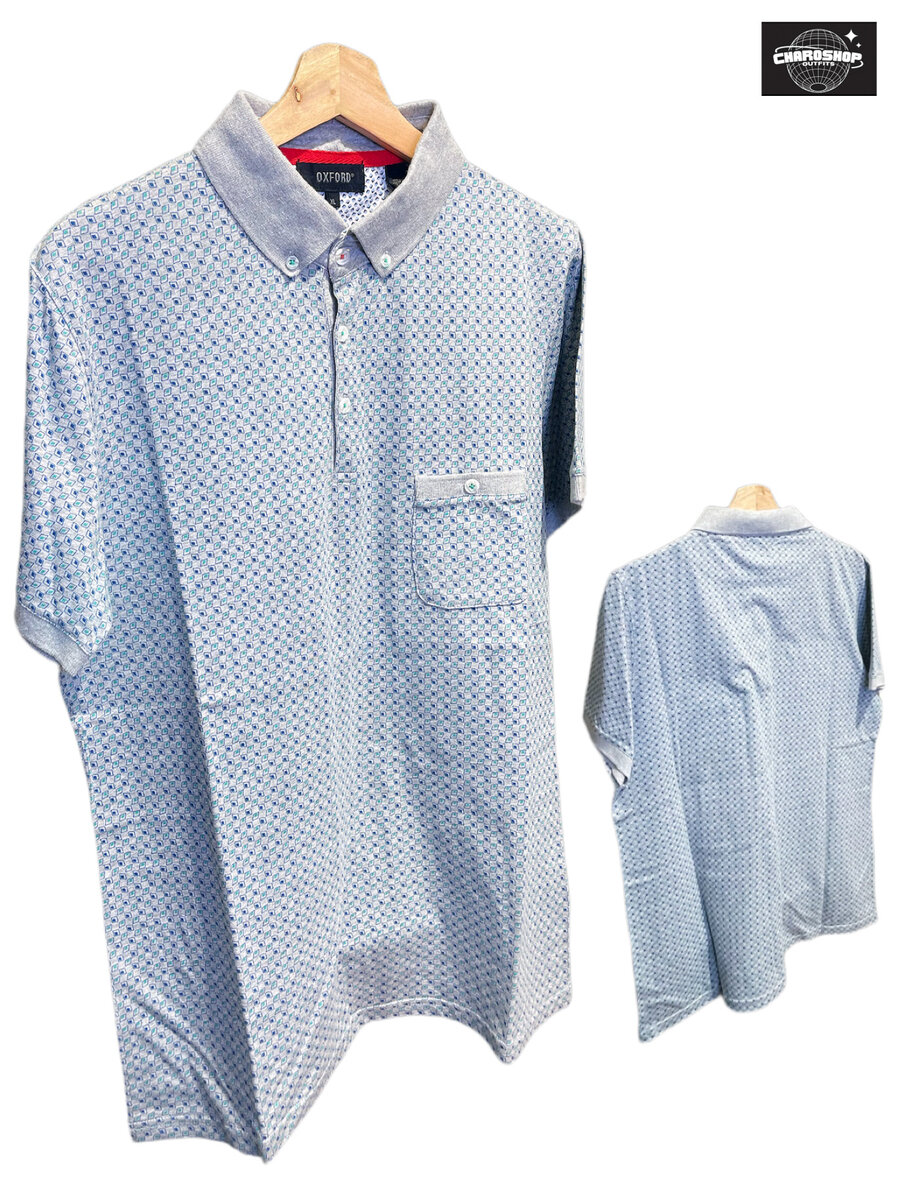 Chemise homme manche courte bleu clair avec motif. Confortable et élégante, idéale pour les occasions décontractées.