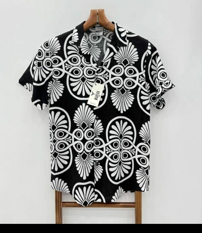 Élégante chemise homme à motifs graphiques noir et blanc. Idéale pour un look tendance et moderne lors de soirées ou sorties décontractées. Confectionnée en matière légère pour un confort optimal. Parfaite pour les amateurs de styles uniques.