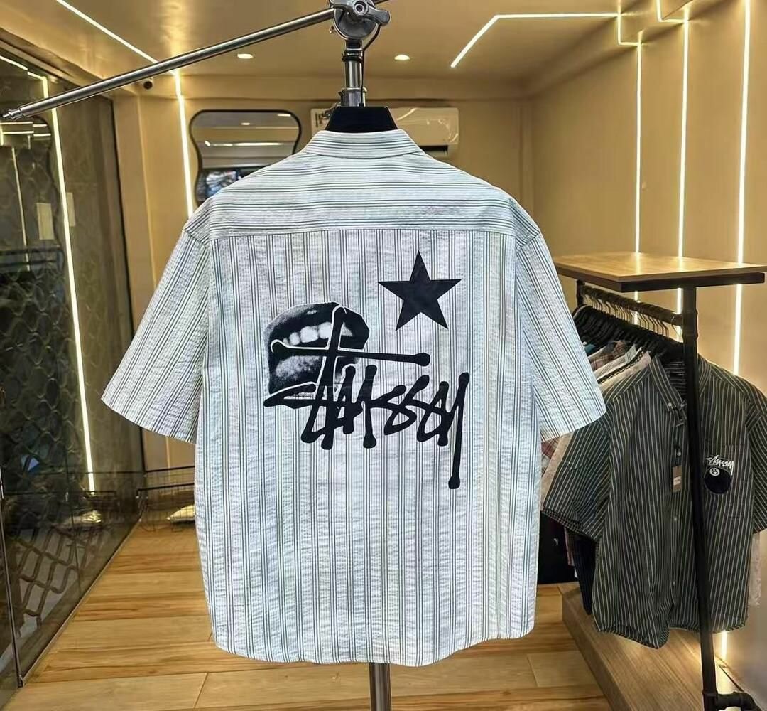 Chemise Stüssy pour homme, à manches courtes et col classique, idéale pour un look décontracté et tendance.