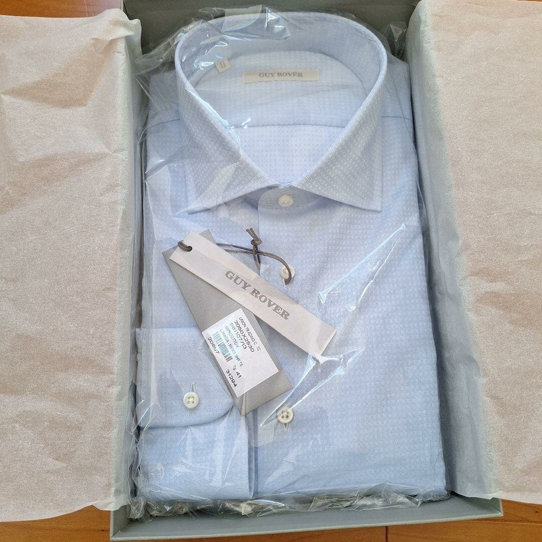 Apparence : La chemise est neuve et emballée dans un film protecteur, son col blanc est visible avec l'étiquette "TRU TRUSSARDI".