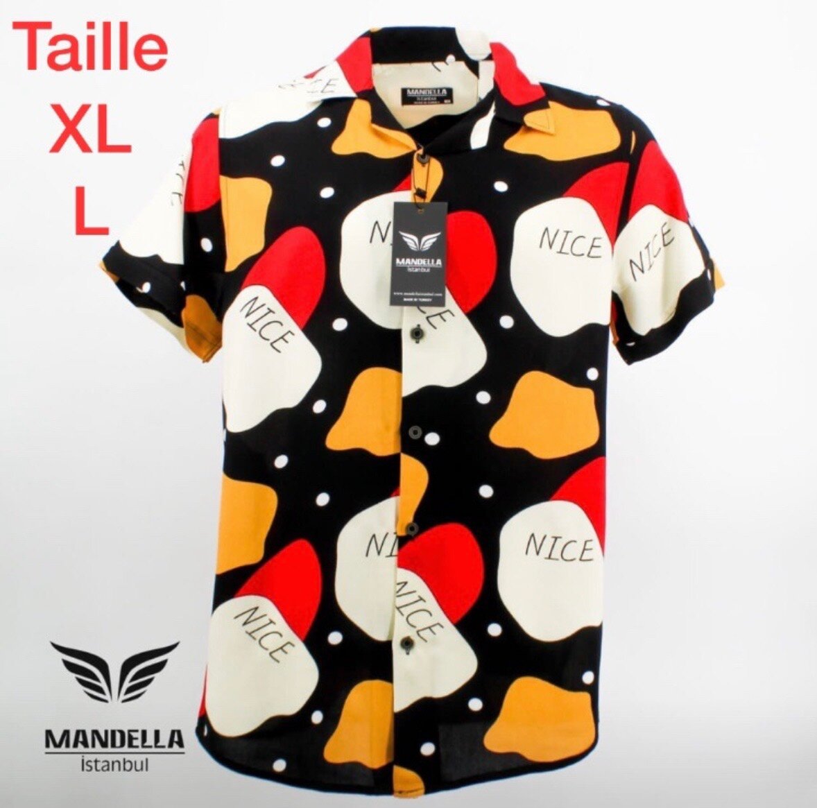 Chemise élégante Mandella pour homme, disponible en tailles L à XL. Tissu léger avec motifs uniques, idéale pour un look décontracté et stylé. Parfaite pour l'été et les occasions informelles.