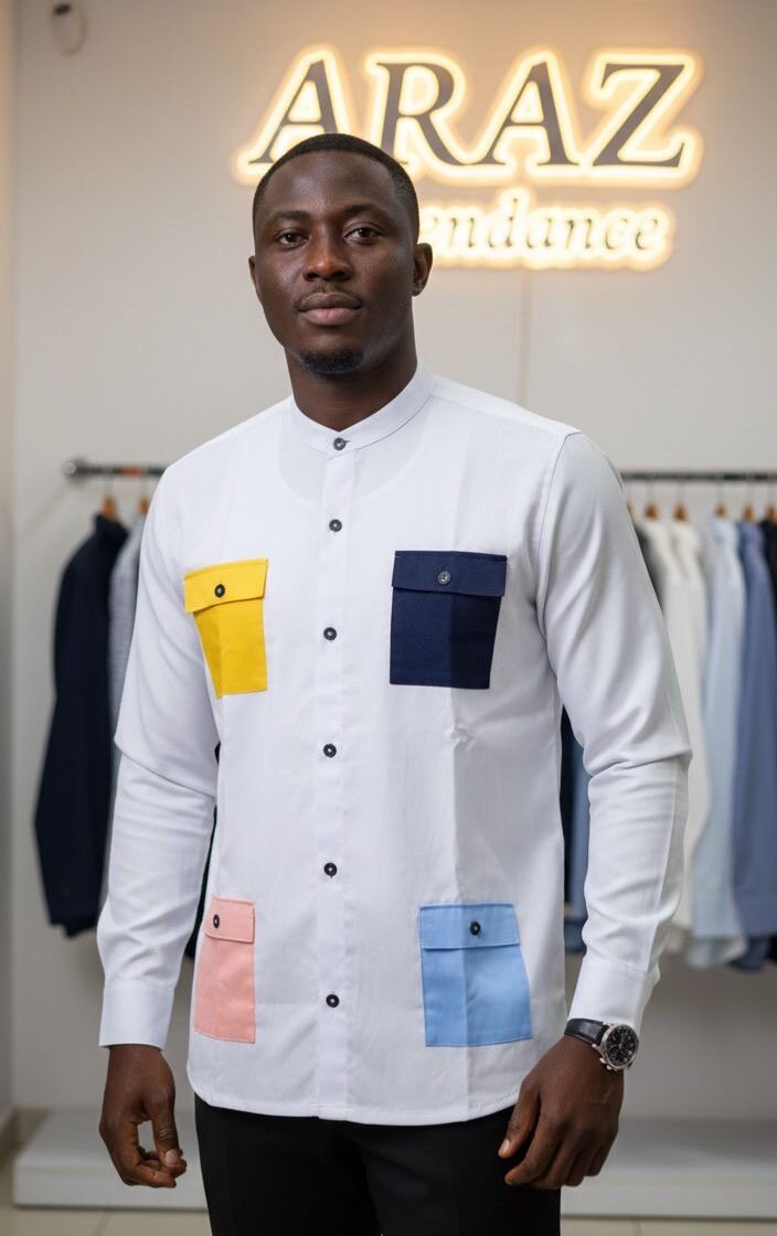 Chemise élégante pour homme avec poches colorées. Parfaite pour un style décontracté et moderne. Fabrication de haute qualité, idéale pour toutes les occasions. Soyez unique et stylé en toute simplicité.