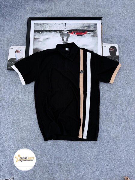 Chemise noire homme avec rayures blanches sur le côté. Confortable et élégante, idéale pour les occasions décontractées ou semi-formelles.
