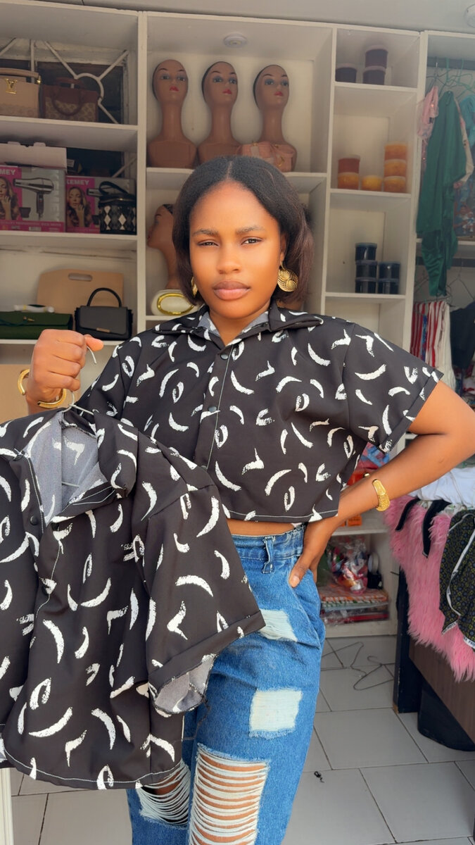 Ajoutez une touche moderne à votre garde-robe avec cette chemise noire élégante, ornée d'un motif unique. Idéale pour un style décontracté ou chic, elle s'associe parfaitement avec des jeans ou des jupes. Confortable et tendance, elle est le choix parfait pour toutes les occasions. Soyez stylée avec cette pièce incontournable!