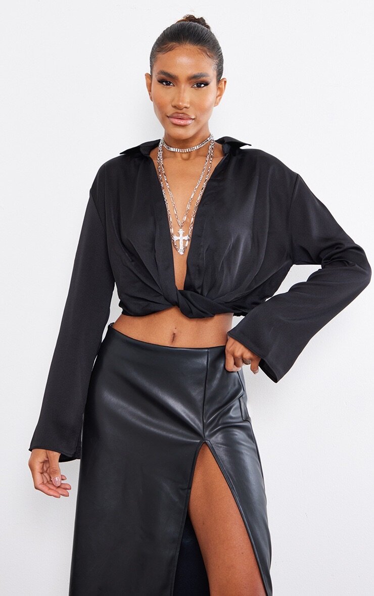 Découvrez cette chemise noire tendance, idéale pour un look chic et audacieux. Conçue pour les femmes modernes, elle se noue à l'avant pour une allure séduisante. Parfaite pour une soirée ou une sortie en ville, cette chemise se marie aisément avec une jupe ou un pantalon.