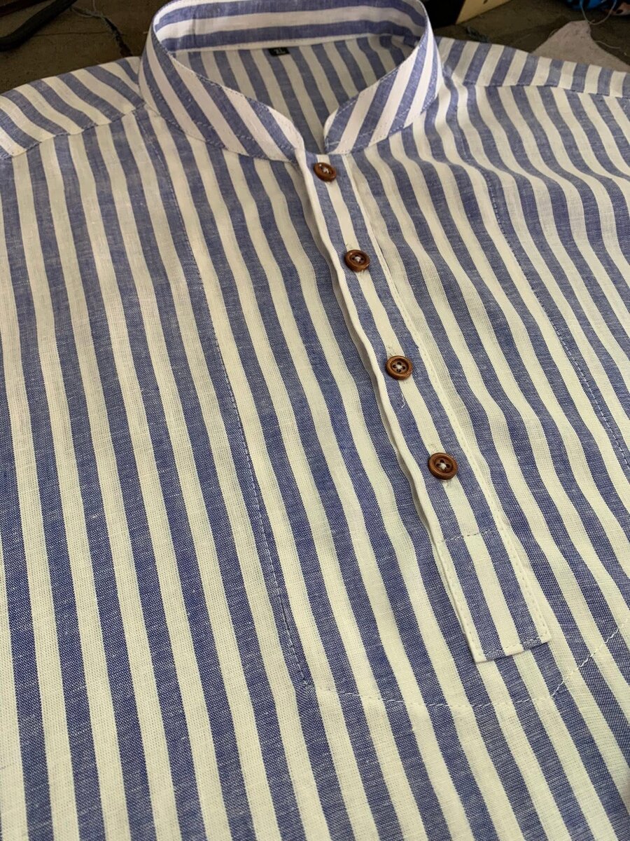 Découvrez notre chemise élégante à rayures bleues idéale pour un look chic et moderne. Fabriquée en coton de haute qualité, elle offre confort et style au quotidien. Son col mao sans bouton ajoute une touche unique et sophistiquée, parfaite pour les occasions décontractées ou professionnelles. Associez-la avec un jean ou un pantalon habillé pour un ensemble impeccable. C'est le choix parfait pour l'homme moderne qui ne compromet ni le style ni le confort.