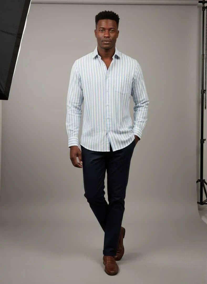 Optez pour cette chemise rayée élégante pour un look professionnel et chic. Confectionnée en coton doux, elle assure confort et style au bureau ou lors de vos occasions spéciales. Parfaite pour être associée à un costume ou portée seule pour une allure décontractée sans effort.