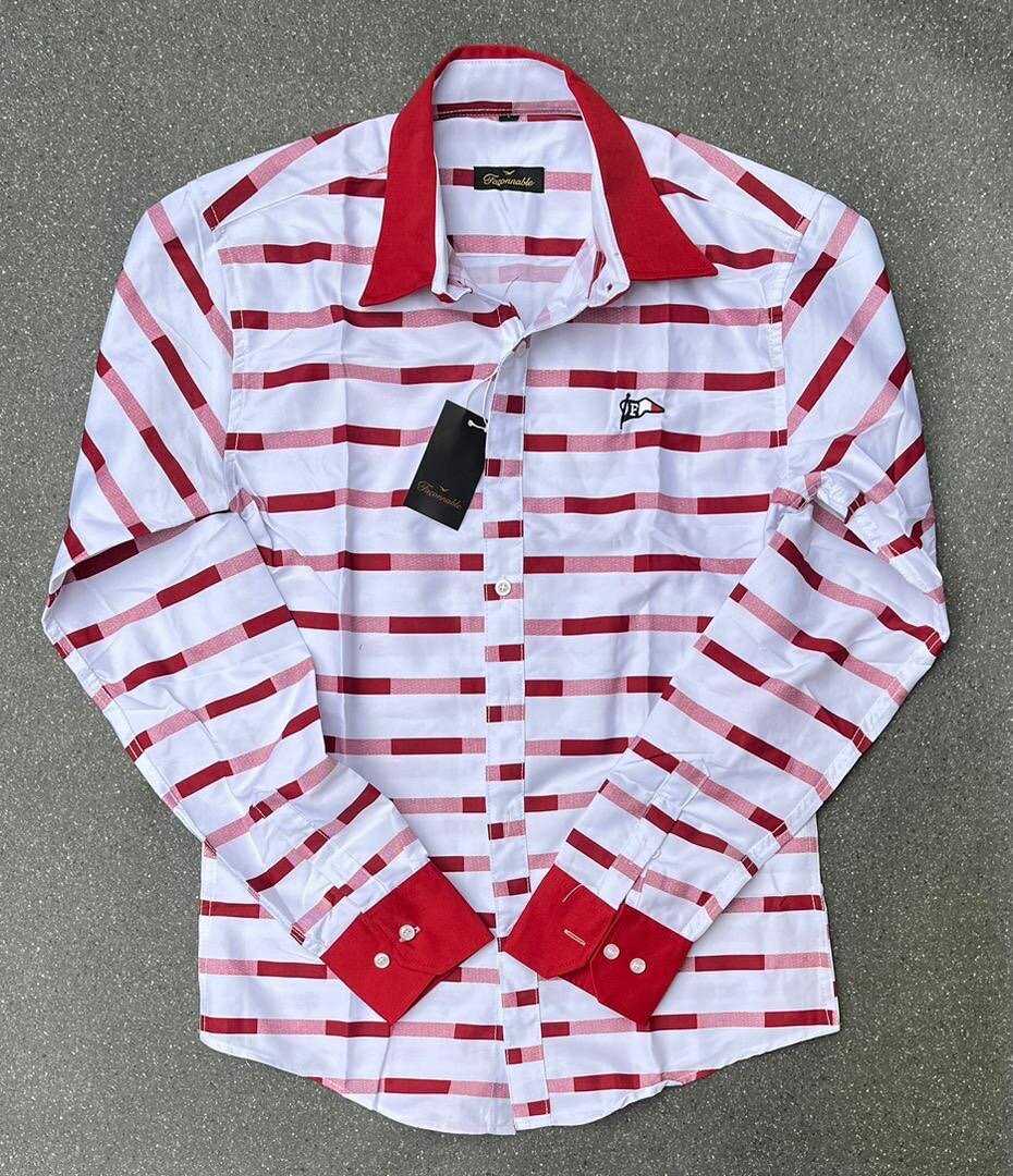 Chemise élégante à rayures rouges et blanches, idéale pour un look sophistiqué. Confectionnée en tissu de haute qualité pour un confort optimal. Parfaite pour le bureau ou les sorties décontractées. Se marie bien avec un pantalon ou une jupe chic.