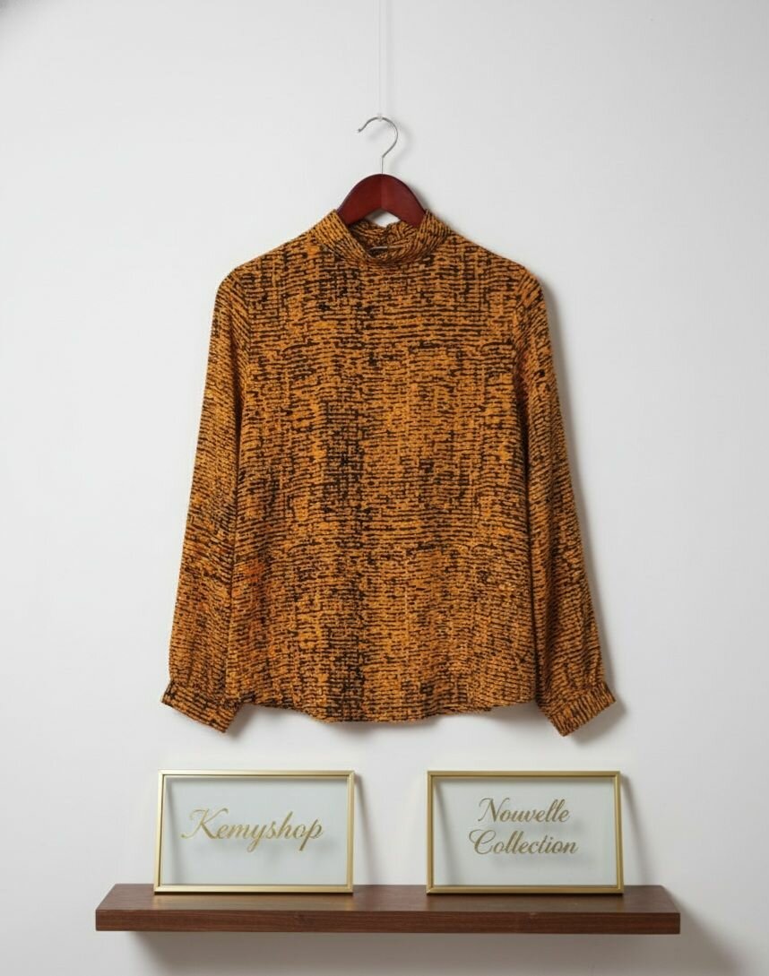 Ce chemisier à col roulé est idéal pour une allure chic et sophistiquée. Parfait pour le bureau ou les sorties élégantes. Confectionné avec des matériaux de haute qualité qui offrent confort et style. Associez-le à une jupe ou un pantalon pour un look impeccable.