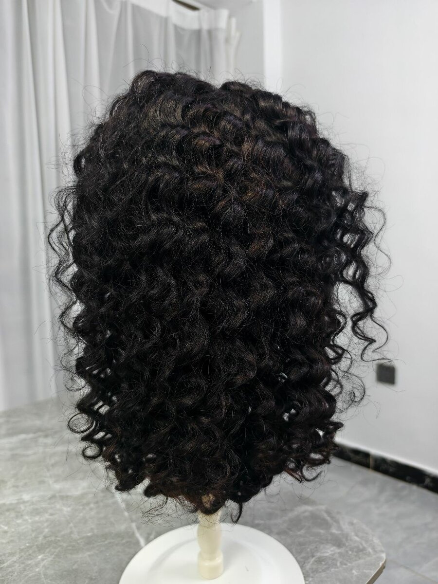 Cheveux vietnamiens, ondulés, longueur 16, noirs, front normal, neufs et non utilisés, haute densité.