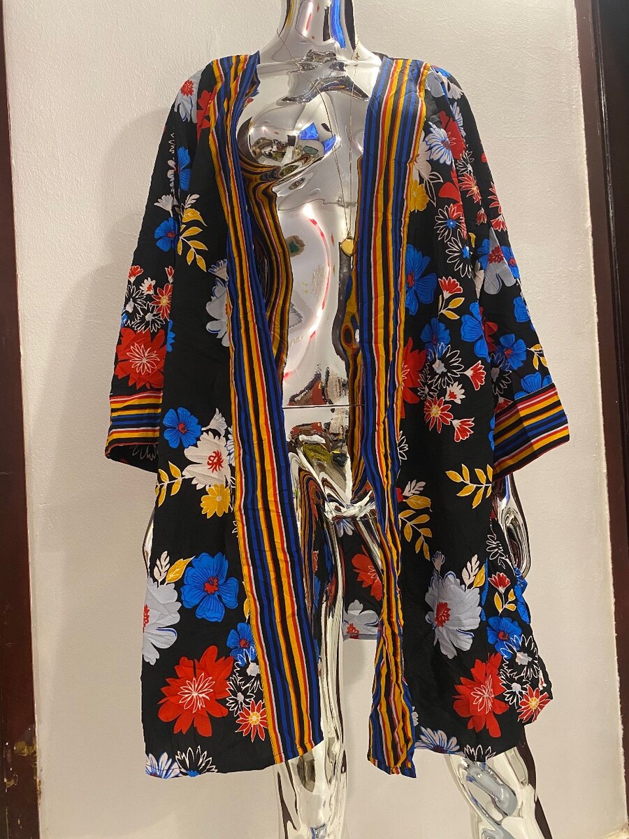 Kimono léger floral noir