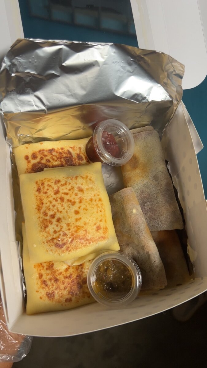 Savourez un assortiment de crêpes dorées et de rouleaux croustillants, accompagnés de sauces savoureuses. Idéal pour un déjeuner rapide ou un apéritif gourmand.
