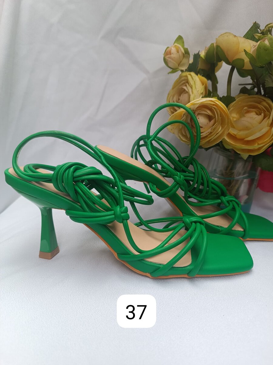 Step out in style with these elegant green heeled sandals. Perfect for making a statement, their unique design and vibrant color add a pop to any outfit. Ideal for parties, events, or a night out.