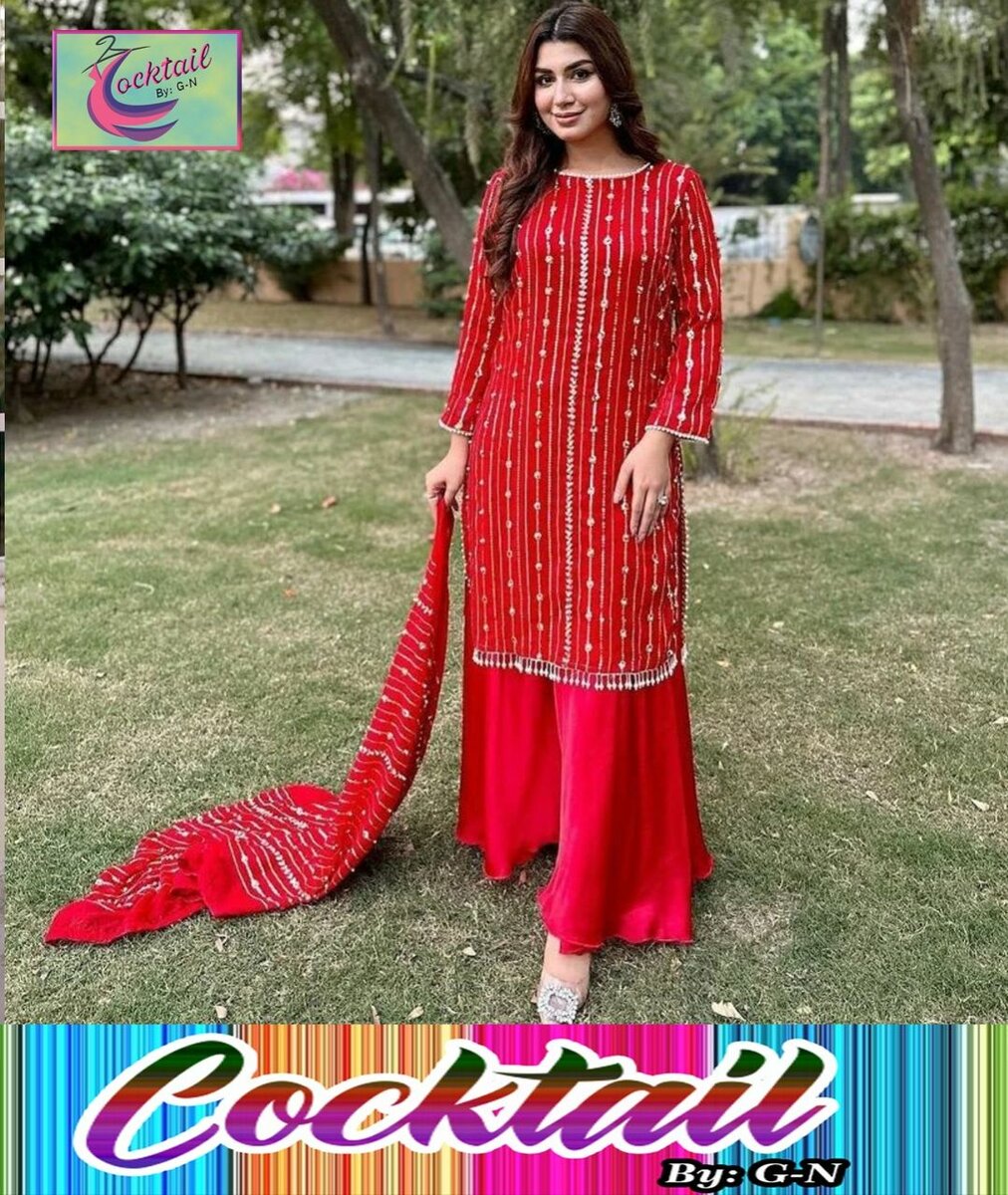 Sequence Embroidery with Punched Pearls on Chiffon Shirt & Stylish Pearls Latkan on Daman