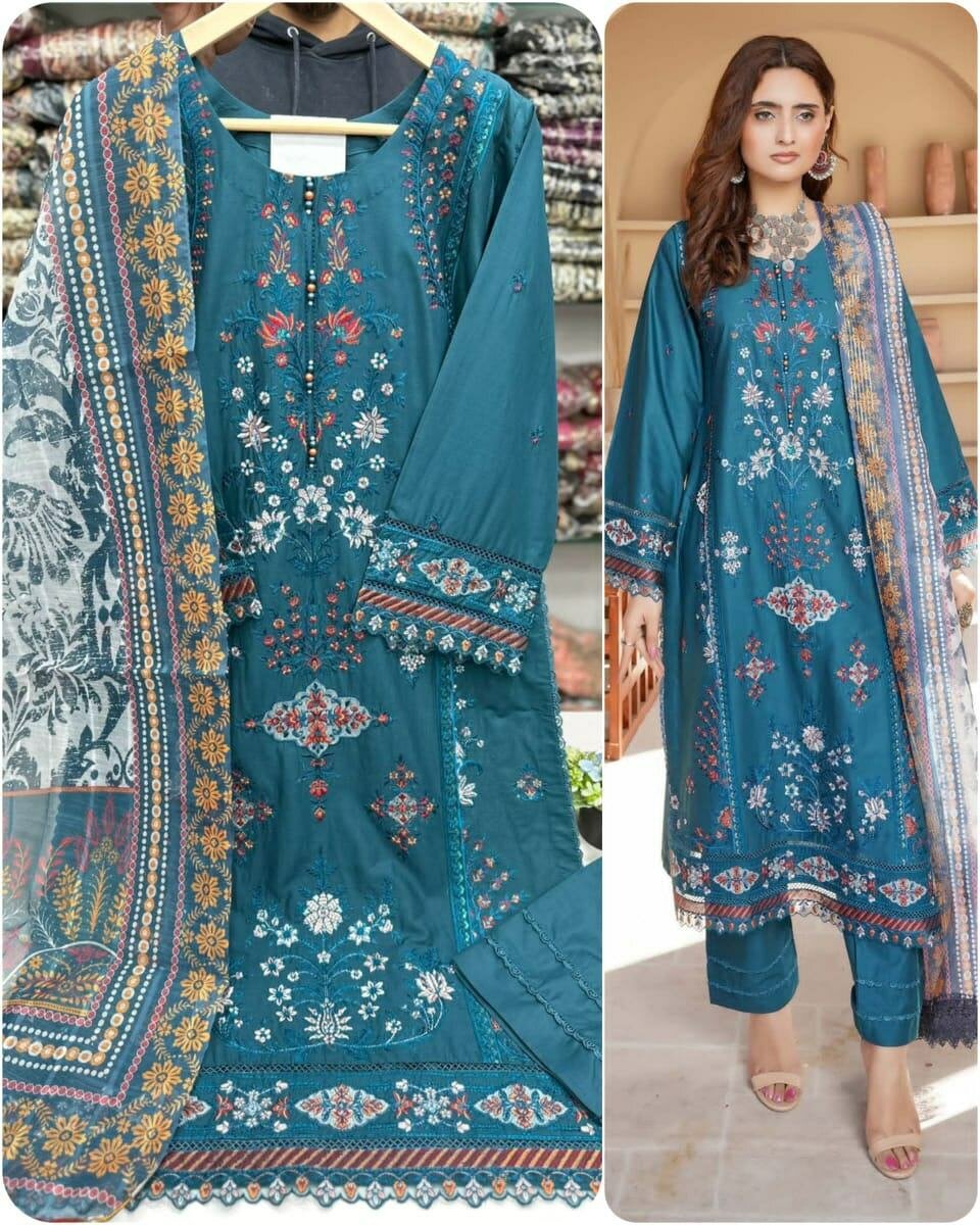 Women unstitched embroidered suit