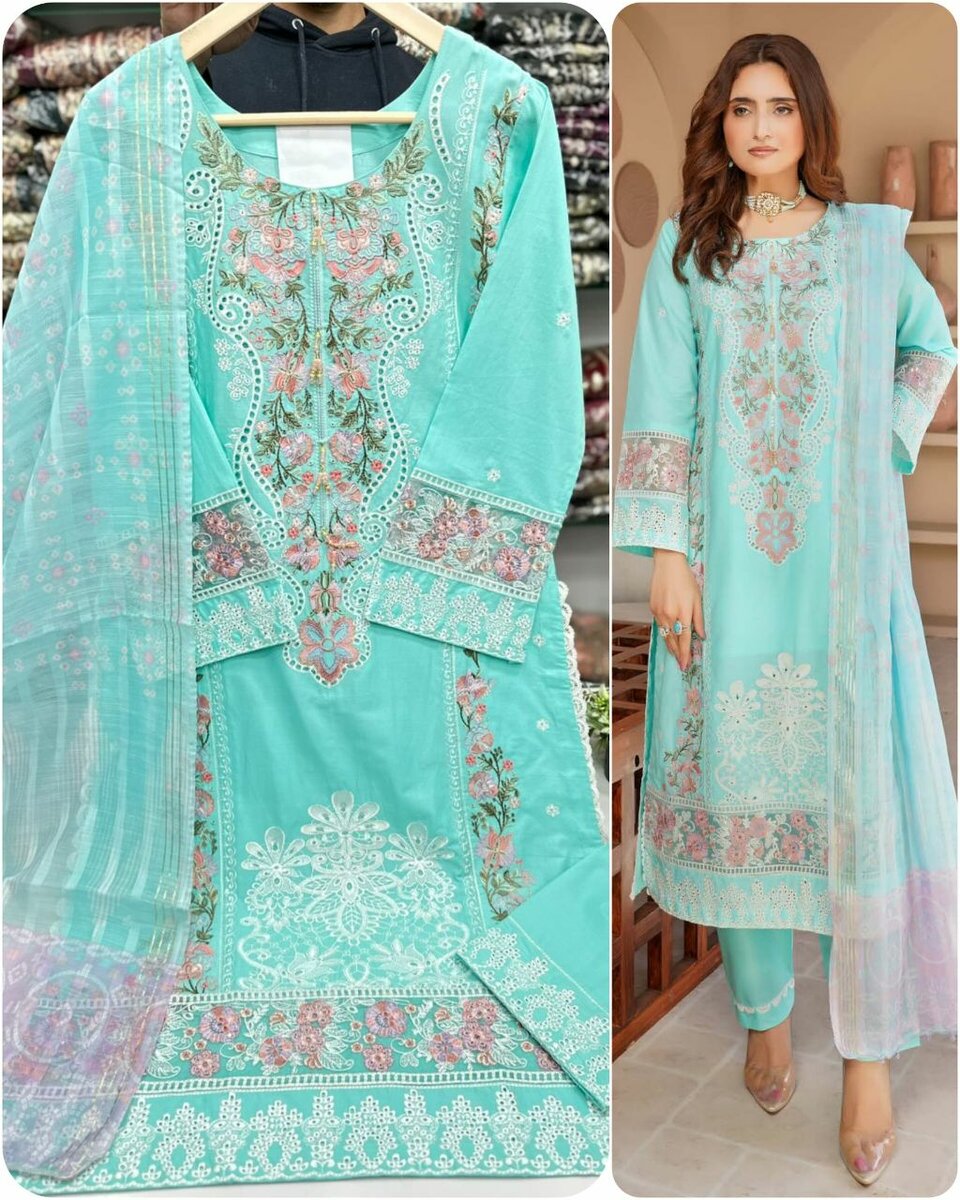 Lawn airjet best quality stuff unstitch suit 3 pc with dc