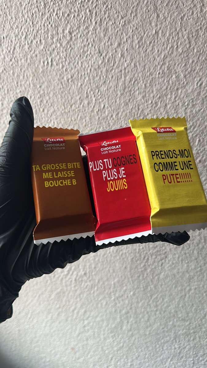 Délice de chocolat avec emballages humoristiques pour un cadeau unique et amusant. Idéal pour surprendre lors d'événements ou comme geste joyeux.