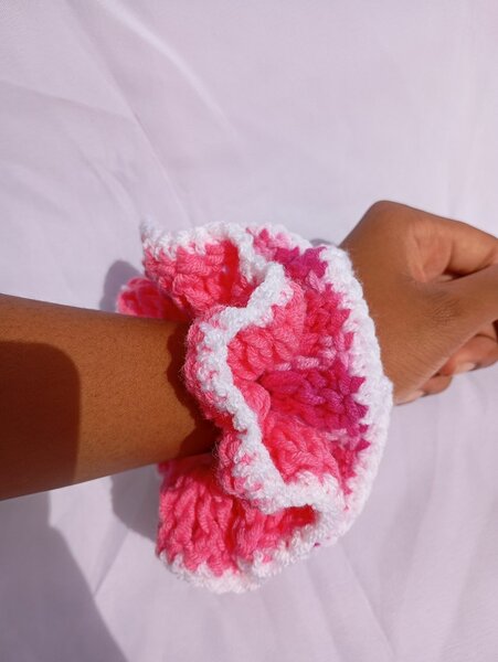 Ajoutez une touche de fun à votre look avec ce chouchou crocheté coloré. Parfait pour attacher vos cheveux avec style ou à porter comme accessoire de poignet tendance. Fabriqué à la main avec des motifs vibrants, cet accessoire est idéal pour égayer vos tenues quotidiennes.