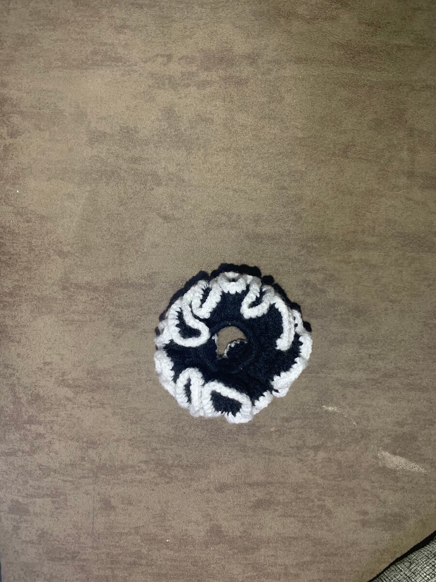 Ajoutez une touche d'élégance à vos coiffures avec ce chouchou tricoté noir et blanc. Parfait pour retenir vos cheveux tout en étant stylé. Idéal pour tous les jours, fêtes ou sorties.