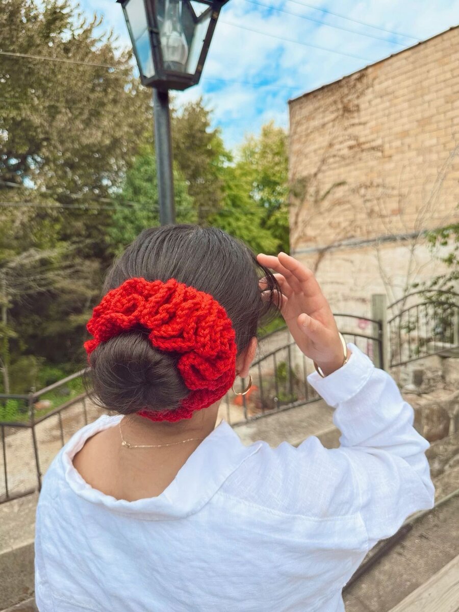 Chouchou en crochet disponible en toutes les couleurs et sur commande.