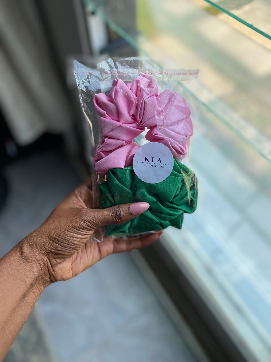 Ajoutez une touche d'élégance à votre coiffure avec ces chouchous en satin. Parfaits pour un maintien délicat et stylisé, ils sont idéaux pour toutes les occasions. Disponible en rose et vert, ces accessoires de cheveux sont un must-have pour un style chic et tendance.