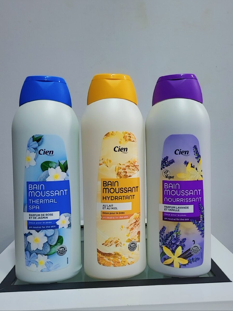 Découvrez une expérience de bain luxueuse avec le bain moussant Cien. Trois variantes séduisantes : SPA thermal, hydratant au lait, et nourrissant à la lavande. Parfaits pour détendre et revitaliser votre corps et esprit.